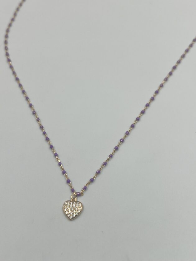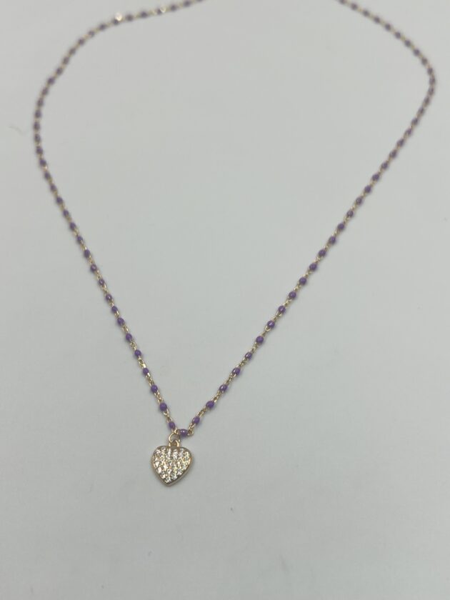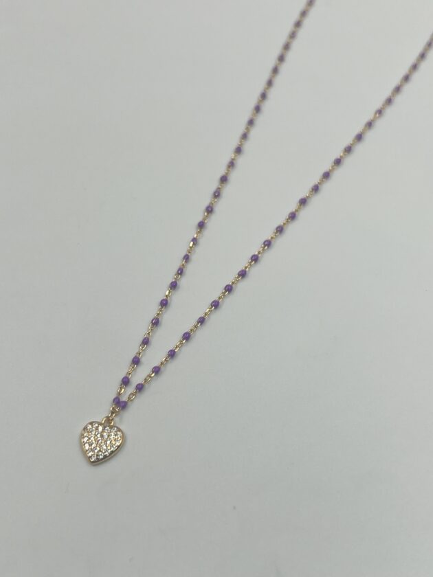 Κολιέ Ασήμι 925 με Ροζάριο Λιλά με Καρδιά (ΚΟ065)