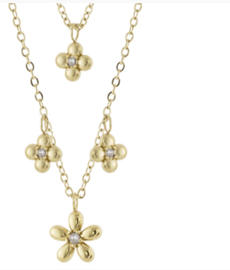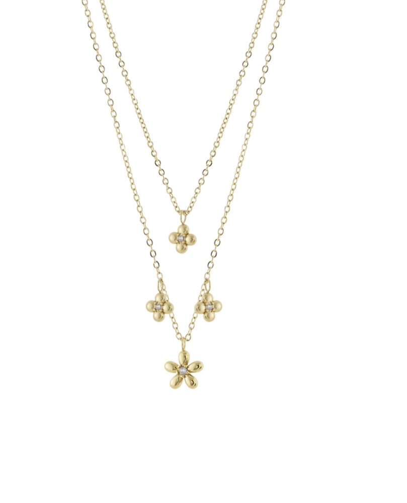 Κολιέ Loisir Flower ατσάλινο επίχρυσο διπλό με λουλούδια και λευκά κρύσταλλα 01L27-00871