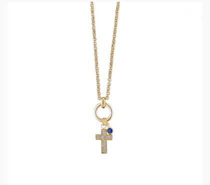 Κολιέ Charming μεταλλικό επίχρυσο με κρίκο, σταυρό και λευκά και μπλε ζιργκόν 01L15-01296
